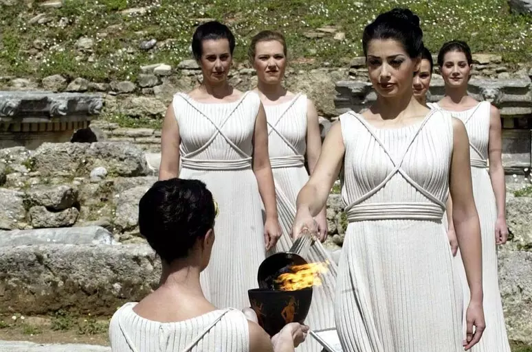 La 'grande sacerdotessa', interpretata dall'attrice ellenica Mary Mina, ha acceso la torcia con la...