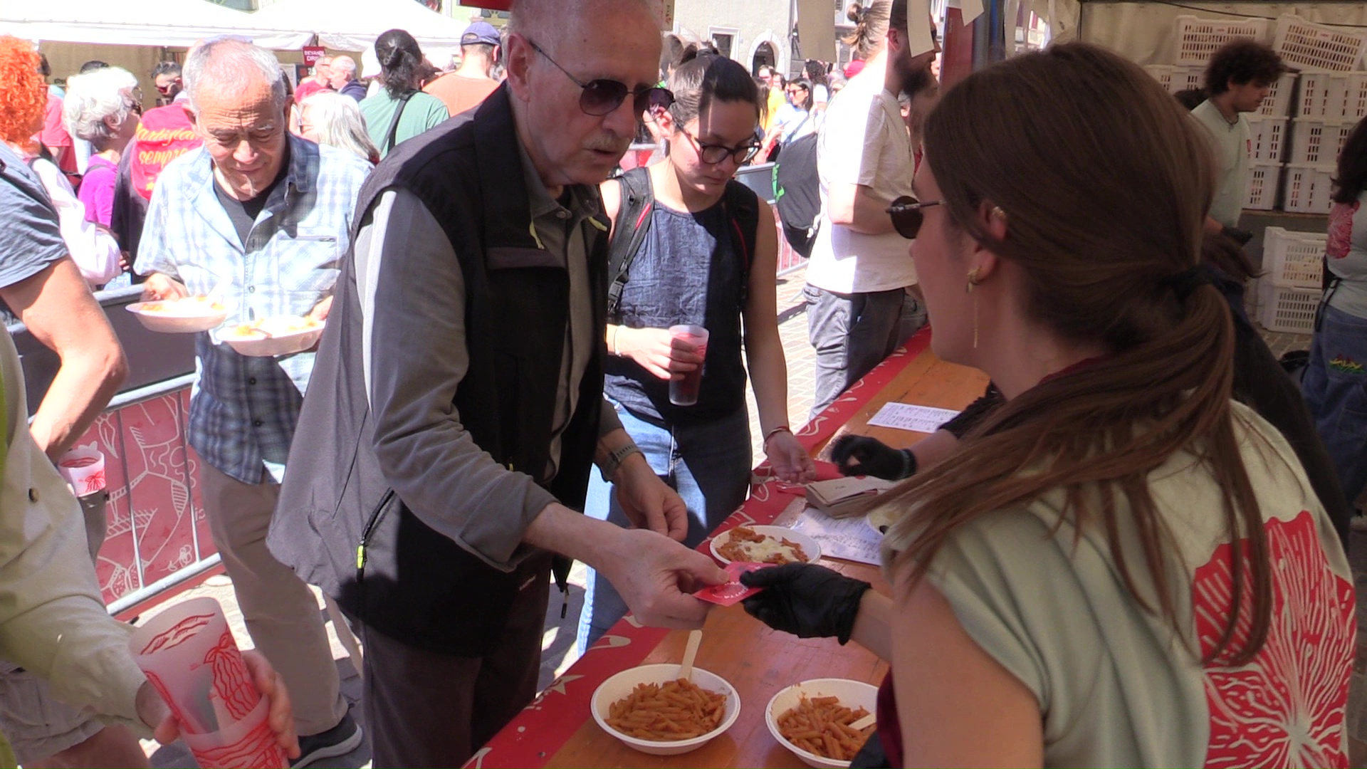 La musica, il buon cibo sui tavoli e una folla che rende omaggio alla Resistenza. Nell’anno in cui la Repubblica Italiana festeggia il suo 80esimo anniversario, a Trento non poteva mancare la tradizionale “pastasciutta antifascista” del 25 aprile. L’evento che a partire dalle 12 ha dato seguito alle celebrazioni della mattinata. Un rito cittadino che tiene alto il ricordo del gesto compiuto dalla famiglia Cervi il 25 luglio del 1943. Quel giorno, appresa la notizia dell’arresto di Benito Mussolini, i Cervi offrirono chili di pastasciutta a tutti gli abitanti di Campegine, piccolo comune in provincia di Reggio Emilia, per festeggiare la caduta del regime fascista. Otto decenni dopo, quel gesto rivive nella memoria collettiva. A organizzare la festa, per il 17esimo anno consecutivo, l’Arci del Trentino. Con circa 200 chili di pasta e 150 volontari dispiegati in Piazza della Mostra. Ad accompagnare il banchetto, anche i balli della Murga. Dalle 14 in avanti, spazio sul palco alla rassegna “incontri resistenti” e poi concerti fino alle 22.30 di sera.