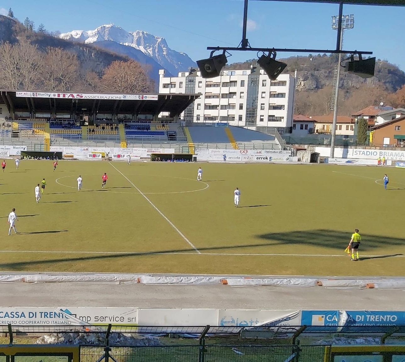 Il calcio con il Trento, oggi in casa contro Lecco. La partita al Briamasco si conclude sull’1-1 dopo un finale molto intenso. Il Trento passa in vantaggio all’85’ con Candelari e sembra poter controllare il risultato. Nei minuti di recupero il Lecco aumenta la pressione e crea un’occasione importante al 90’+4. Il Trento prova a difendere il vantaggio, ma il recupero si prolunga. Al sesto minuto di recupero Metlika segna il gol del pareggio per il Lecco.