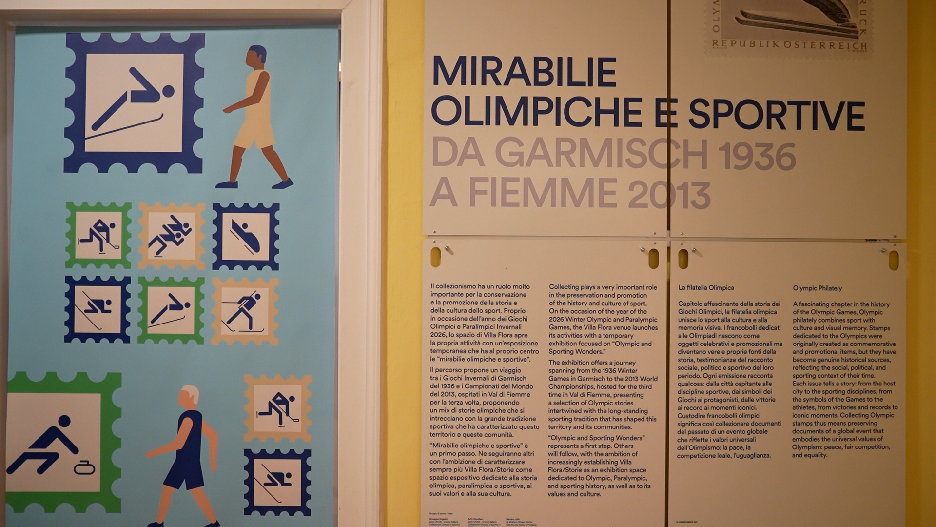 Il Trentino e la val di Fiemme proseguono con le iniziative di avvicinamento alle Olimpiadi invernali. A Villa Flora a Ziano di Fiemme inaugurata “Mirabilie olimpiche e sportive. Da Garmish 1936 a Fiemme 2013” una mostra a cura di Giuseppe Brigadoi, Silvano Morandini, Rufin Schulliam, Mariano Lollo, Luciano Dassala. Un viaggio nel tempo che unisce memoria, territorio e valori condivisi: storie di sport, Olimpiadi, persone e comunità che hanno lasciato il segno. Il percorso propone un viaggio tra i Giochi invernali di Garmisch del 1936 e i Campionati del mondo del 2013, ospitati in Val di Fiemme per la terza volta, proponendo un mix di storie olimpiche che si intrecciano con la grande tradizione sportiva che ha caratterizzato questo territorio e queste comunità.
