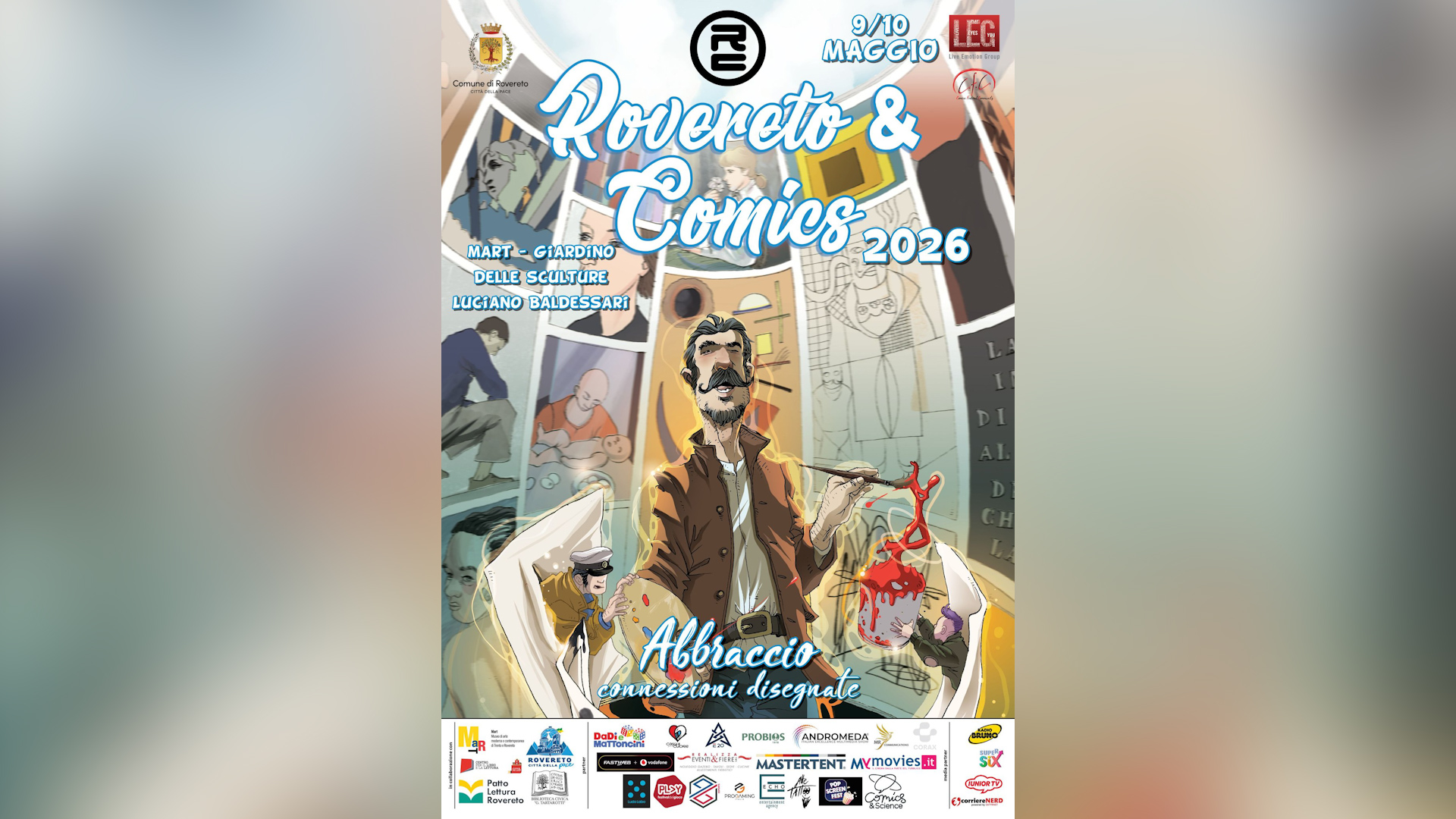 Il Mart partecipa con entusiasmo a Rovereto & Comics, confermando l’impegno sulla città attraverso una rete sempre più fitta di sinergie e collaborazioni trasversali con i principali attori culturali del territorio. Da un lato, il museo organizza visite guidate speciali dedicate alla valorizzazione del patrimonio e degli artisti; dall’altro, propone laboratori pensati per coinvolgere nuovi pubblici. A cura dell’Archivio del ’900, il centro di ricerca e sperimentazione del Mart, una speciale visita guidata condotta dai responsabili dell’Archivio e della Biblioteca approfondirà le raccolte di alternative comics custodite dal museo. Protagonisti: tavole originali, albi e fumetti dagli anni Settanta ad oggi. Inoltre, in occasione di Comics sarà allestita un’esposizione temporanea di matrici originali di Gianluca Lerici in arte Prof. Bad Trip, figura di culto del fumetto underground italiano. Nella piazza del Mart, allestita per il festival, si terrà, nella giornata di sabato dalle 15.00 alle 17.00, un laboratorio continuo gratuito per bambine e bambini sulla tecnica della stampa con i timbri.