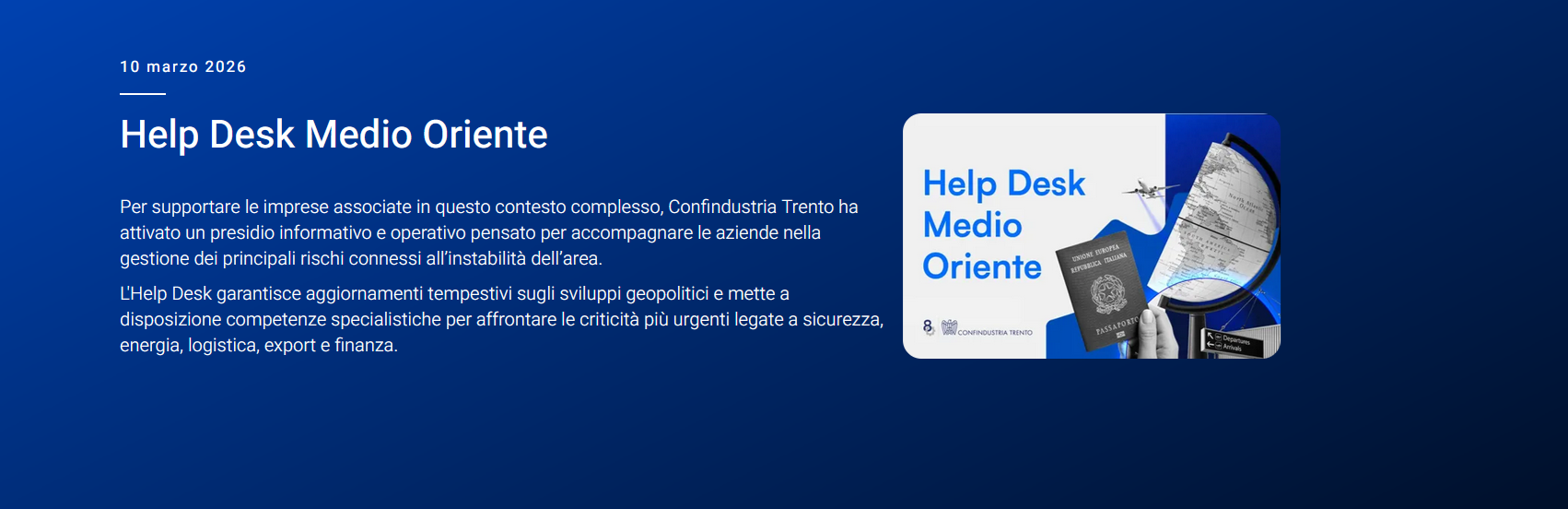 Garantire supporto alle imprese trentine che esportano in Medio Oriente, grazie ad un Help Desk dedicato e realizzato proprio con questo obiettivo. La mossa di Confindustria Trento segna un passaggio concreto in uno scenario fortemente instabile, dove ogni giorno notizie in rapida evoluzione rendono altrettanto incerto il lavoro di centinaia di imprenditrici e imprenditori. Nonostante i numeri non siano quelli di un mercato forte per le nostre aziende, è altrettanto vero che i dati parlano chiaro: dopo le vicende americane degli ultimi anni, su tutte l’introduzione dei dazi, l’idea di differenziare le operazioni ha portato anche le imprese trentine a guardare con interesse al Medio Oriente, tant’è che nel primo trimestre 2025, rispetto all’anno precedente, si è registrato un +29% dell’export in Bahrein, +41% verso gli Emirati Arabi Uniti e addirittura un +66% rispetto al Qatar. Il ruolo del nuovo Help Desk dunque sarà fondamentale.