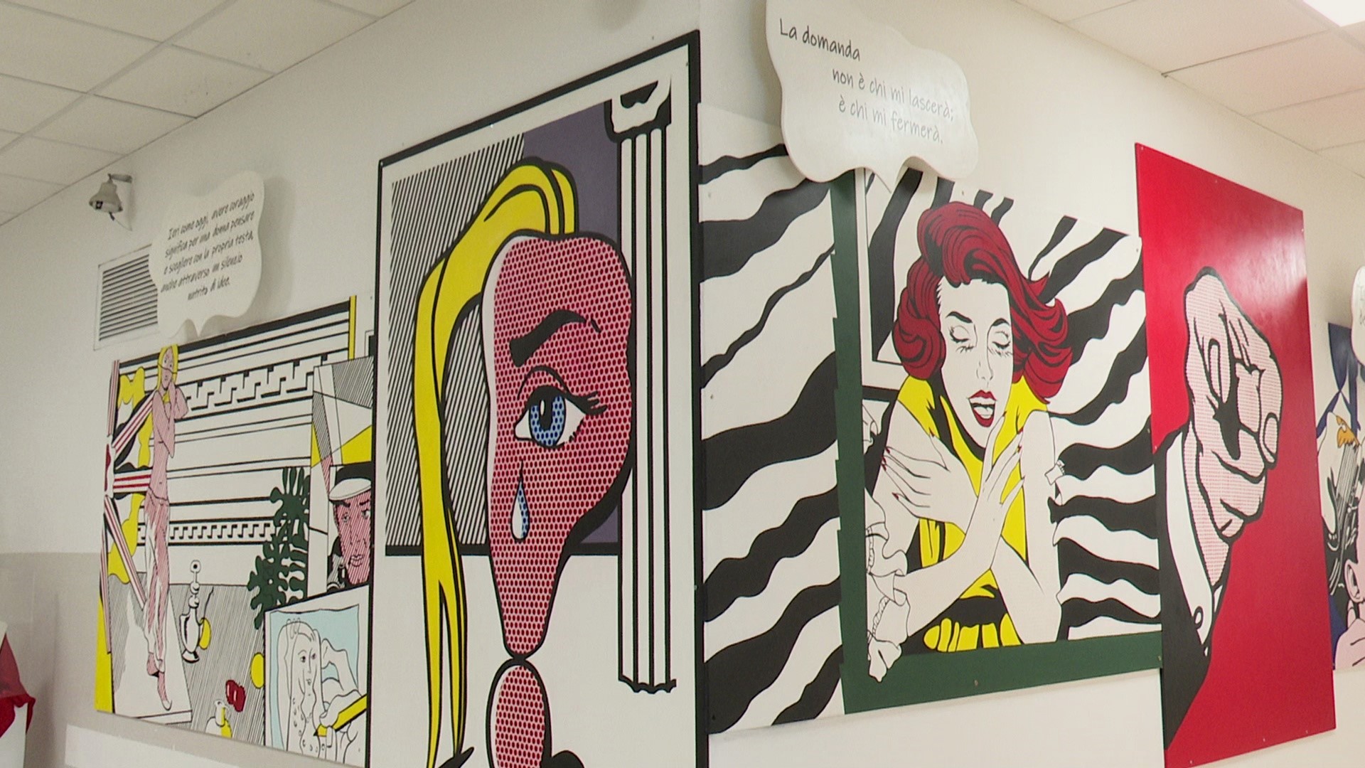 Musica, poesia e la pop art di Roy Lichtenstein per veicolare un indelebile messaggio nella giornata internazionale per l'eliminazione della violenza contro le donne. Le figure femminili, protagoniste nelle opere dell’artista statunitense, sono spesso raffigurate in situazioni tragiche e vulnerabili. Tele che racchiudono una complessità emotiva e psicologica che sfida gli stereotipi femminili e che hanno ispirato studenti e studentesse dell'indirizzo 'Arti Figurative Pittura' del Liceo artistico Vittoria di Trento. La casalinga e la fragile donna dal cuore spezzato, nelle opere delle classi quarte, lanciano messaggi di empowerment femminile e sensibilizzazione contro la violenza di genere. "Un cambio culturale affidato alle nuove generazioni, un riscatto che traspare da questo progetto artistico" - commenta la vice sindaca di Trento, Elisabetta Bozzarelli, presente all'inaugurazione delle opere. “Essere donna è così affascinante. Un’avventura che richiede un tale coraggio, una sfida che non annoia mai”. Scriveva così Oriana Fallaci in 'Lettera ad un bambino mai nato'. Quel pensiero, come quello di altre autrici e autori famosi, divengono nella rivisitazione delle ragazze e dei ragazzi del Vittoria una nuvoletta di una iconica Donna Lichtenstein.