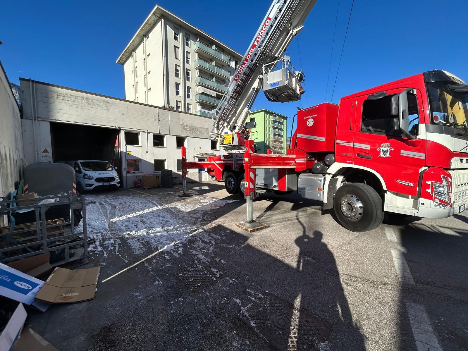 Allarme per un incendio a Lavis intorno alle 11.45 di questa mattina. Il fumo e le fiamme, partite da un quadro elettrico, si sono rapidamente propagate al materiale depositato nel magazzino di un’azienda, in via Segantini. L’area è stata isolata e messa in sicurezza, con una ventina di vigili del fuoco di Lavis, intervenuti con diversi mezzi e la piattaforma, che si sono occupati dello spegnimento. Presenti in via precauzionale anche l’ambulanza e le forze dell’ordine. L'incendio ha portato a un'interruzione elettrica all'edificio, che si è estesa anche a cinque palazzine che sorgono lungo la via. Fortunatamente non si sono registrati feriti.