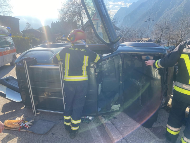 Momenti di paura questa mattina per un incidente a Tenno, in via dei Laghi. Un 82enne del posto ha perso il controllo della sua vettura e si è ribaltato dopo aver urtato il marciapiede. Il veicolo si è fermato proprio davanti alla caserma dei vigili del fuoco, che sono intervenuti immediatamente, estraendo il conducente dal lunotto posteriore. Fortunatamente l'uomo non ha riportato gravi ferite ma è stato comunque trasportato in ospedale per accertamenti.